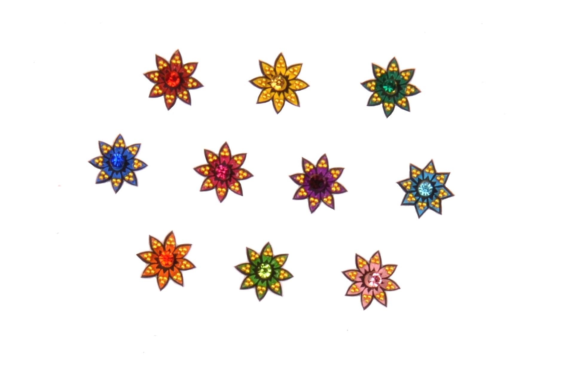 Bindi Stickers – Our simple bindis are available for you in single color and multi color bindi packs. Simple Bindi Designs are sober and these bindis are available in oval, square, diamond shapes to embellish the forehead or any part of the body as per your imagination.
