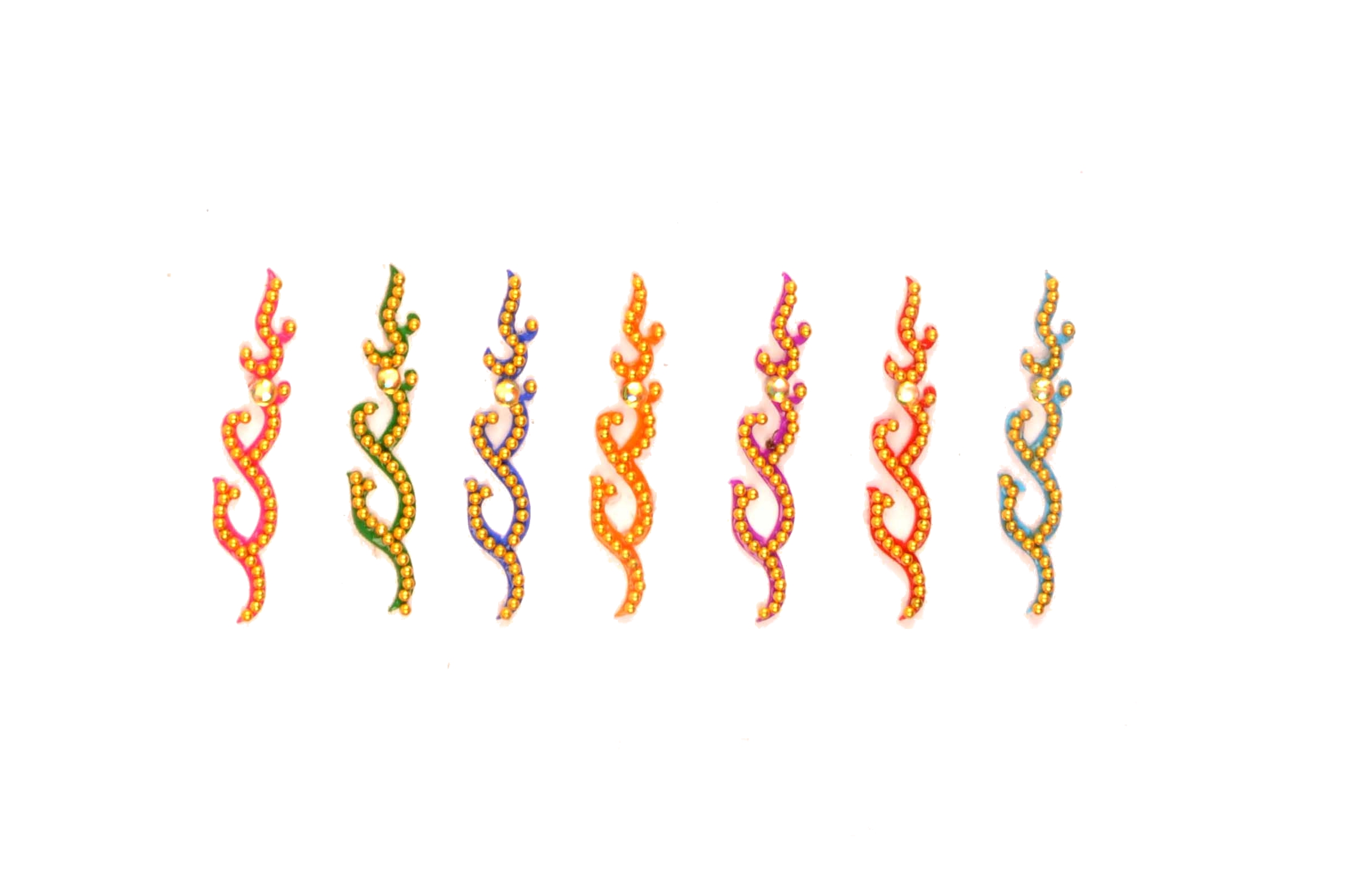 Finely handcrafted and reusable self adhesive jeweled sticker bindi tattoos. Great for highlighting and decorating arms, wrist, lower back. Metallic Bindis are great to wear for a night out, special occasion, weddings, festivals, parties, proms, dances and anytime of the year & our beautiful bindis are made with bead work, studded stones, pearls, diamonds etc. Bindi forehead jewelry are reusable self-adhesive body decoration and are applied just like a sticker and can be used a few times, once the glue has dried out it can be re-used using eyelash or body glue.